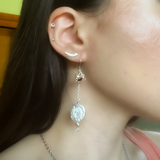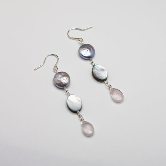 Coin Lavender Pearl, Black Shell & Rose Quartz Earrings (Sterling Silver)