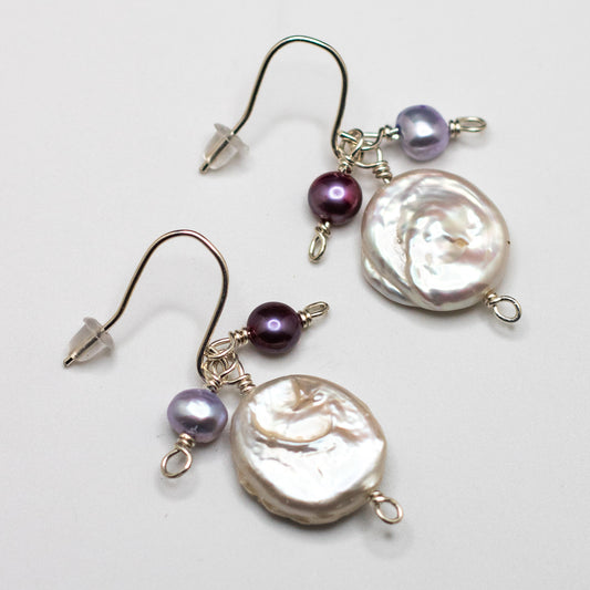 Coin Pearl Lavender & Hot Pink Charm Earrings (Sterling Silver)