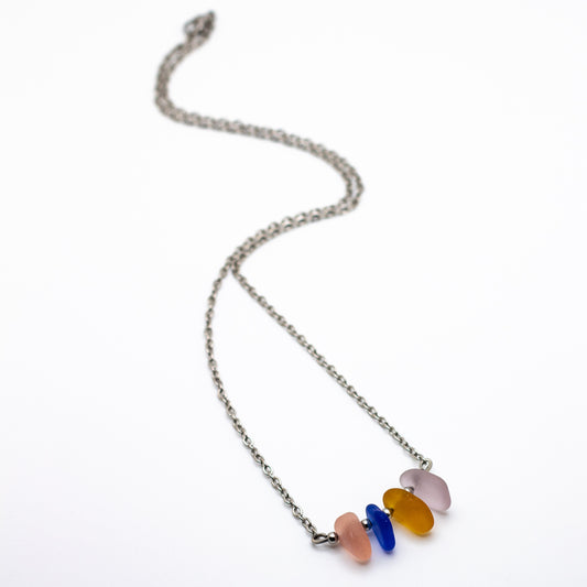 Nova Scotian Pastel Beach Glass Bar Necklace - Pink, Cobalt, Amber, Lavender