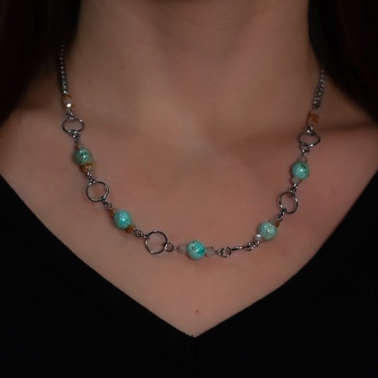 Cherry Blossom Agate and Freshwater Pearl Statement Necklace