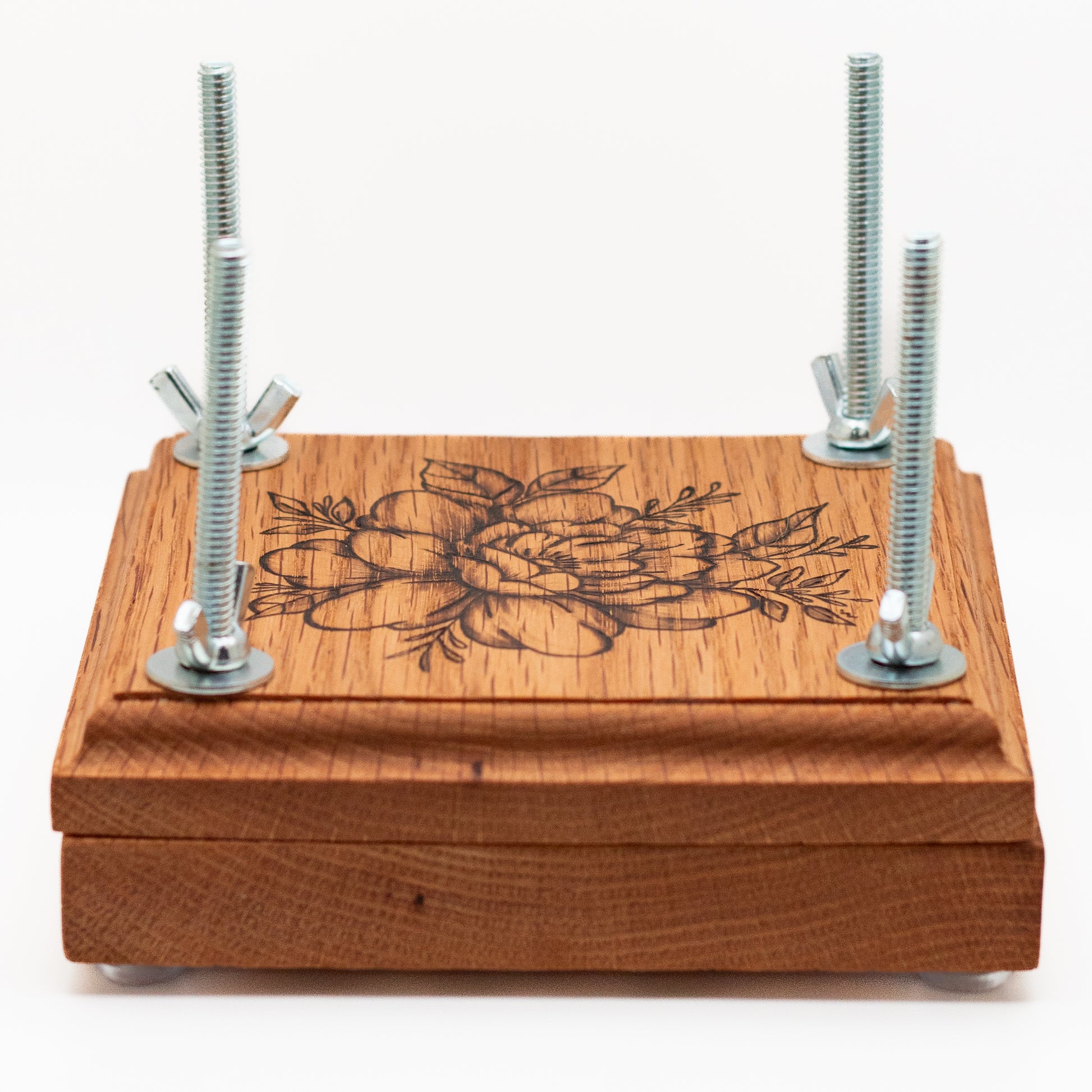 Embrace the beauty of nature and the art of slowing down with our handcrafted Floral Oak Flower Press, thoughtfully designed for both budding and seasoned botanical lovers. Measuring 5.5” x 5.5” x 4", this heirloom-quality piece is perfect for preserving your favorite blooms, leaves, and petals—transforming fleeting moments into lasting memories.
