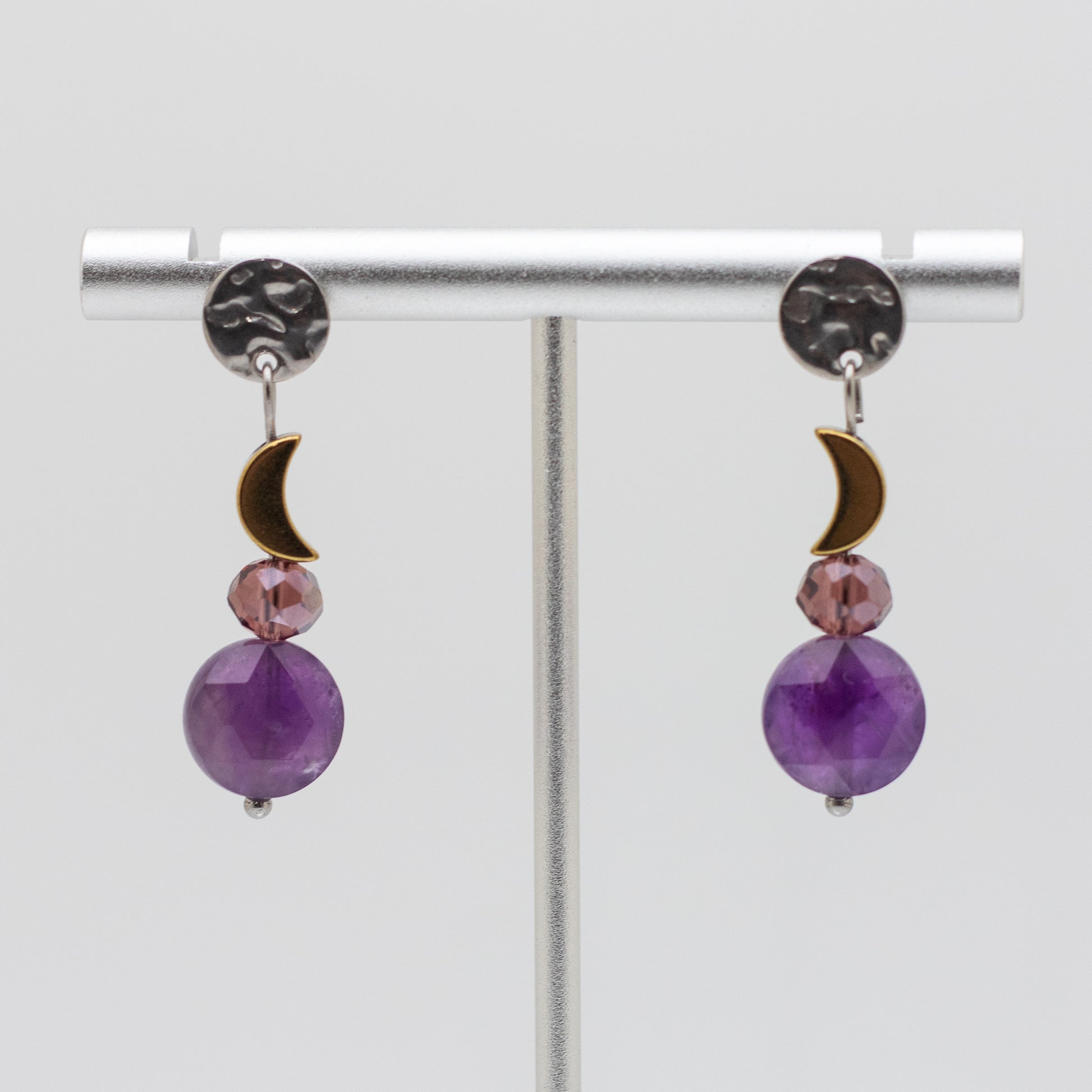 Amethyst & Gold Hematite Moon Earrings