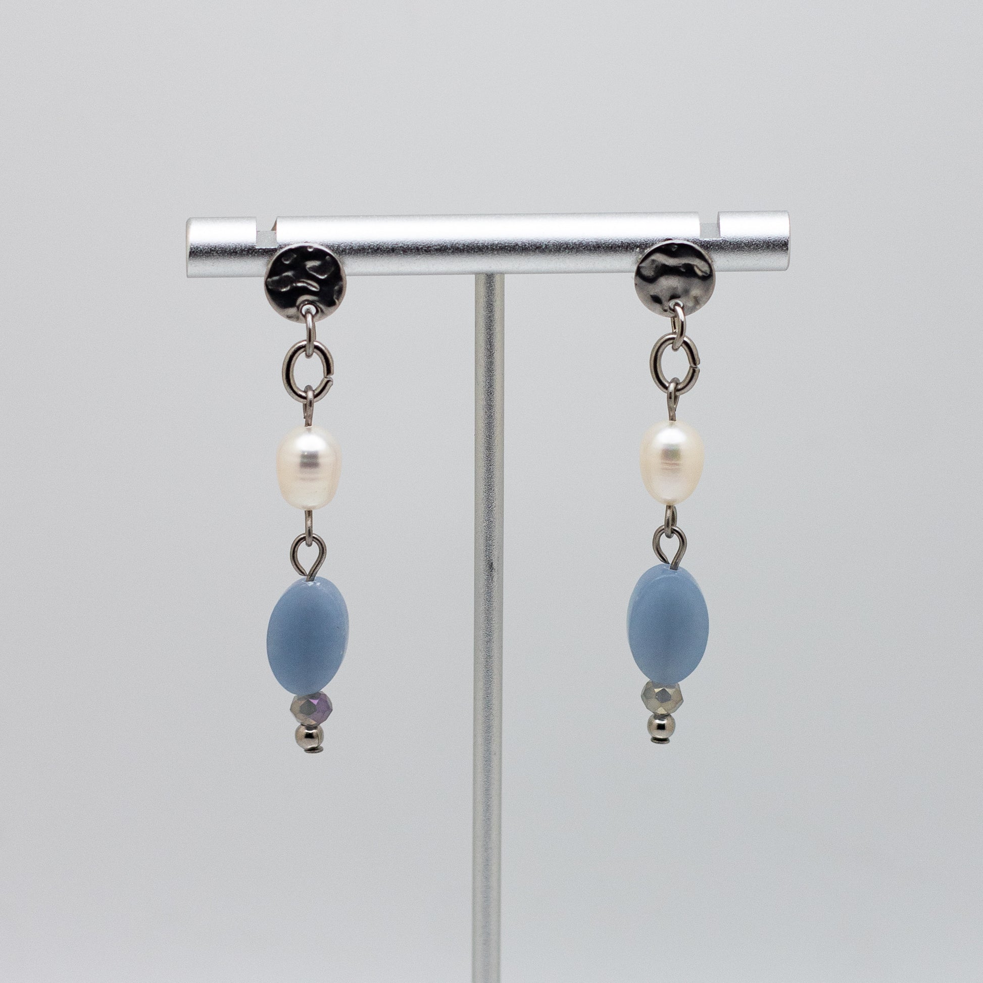 Angelite & Freshwater Pearl Textured Stud-Base Earrings
