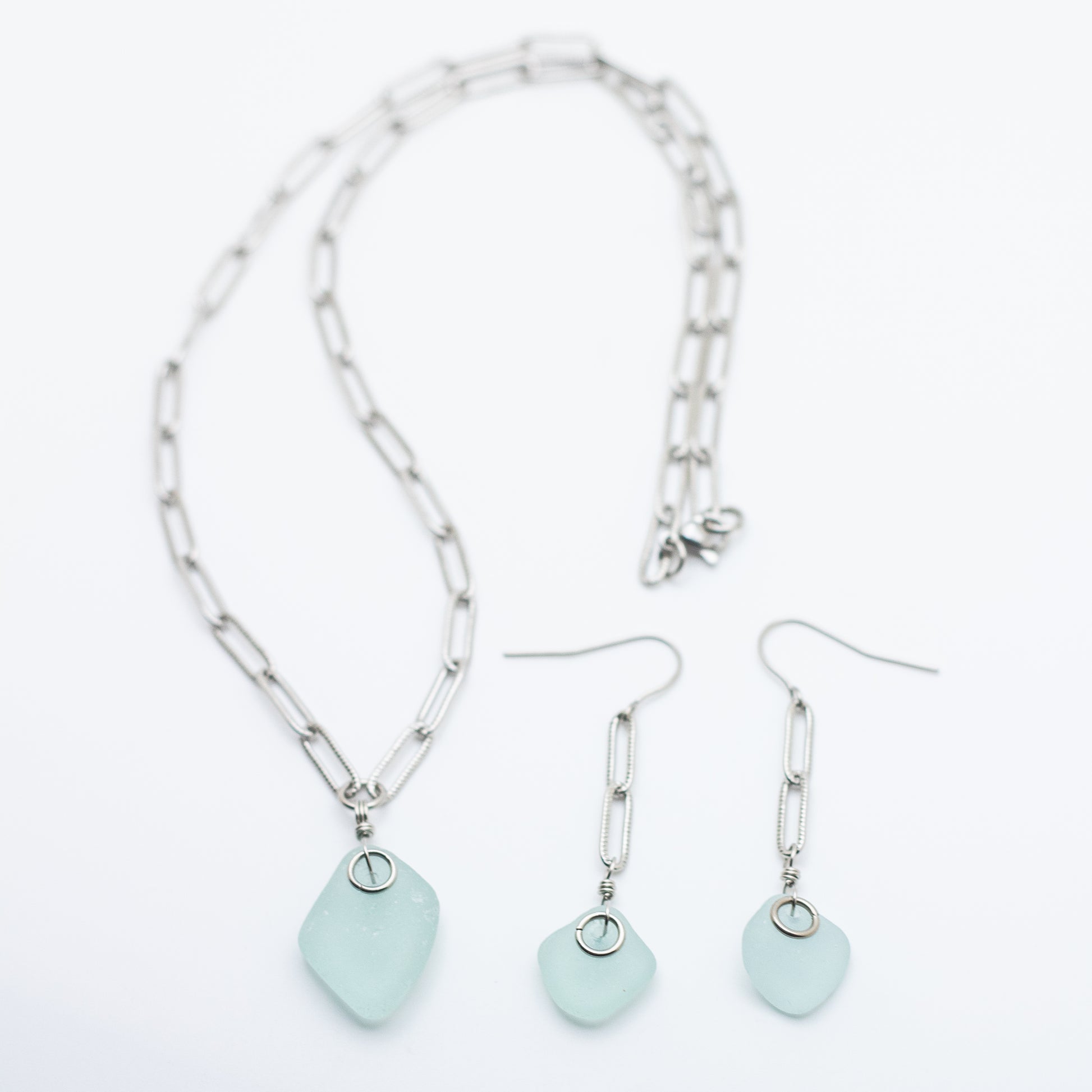 Aqua Beach Glass Necklace & Earring Set — Nova Scotia