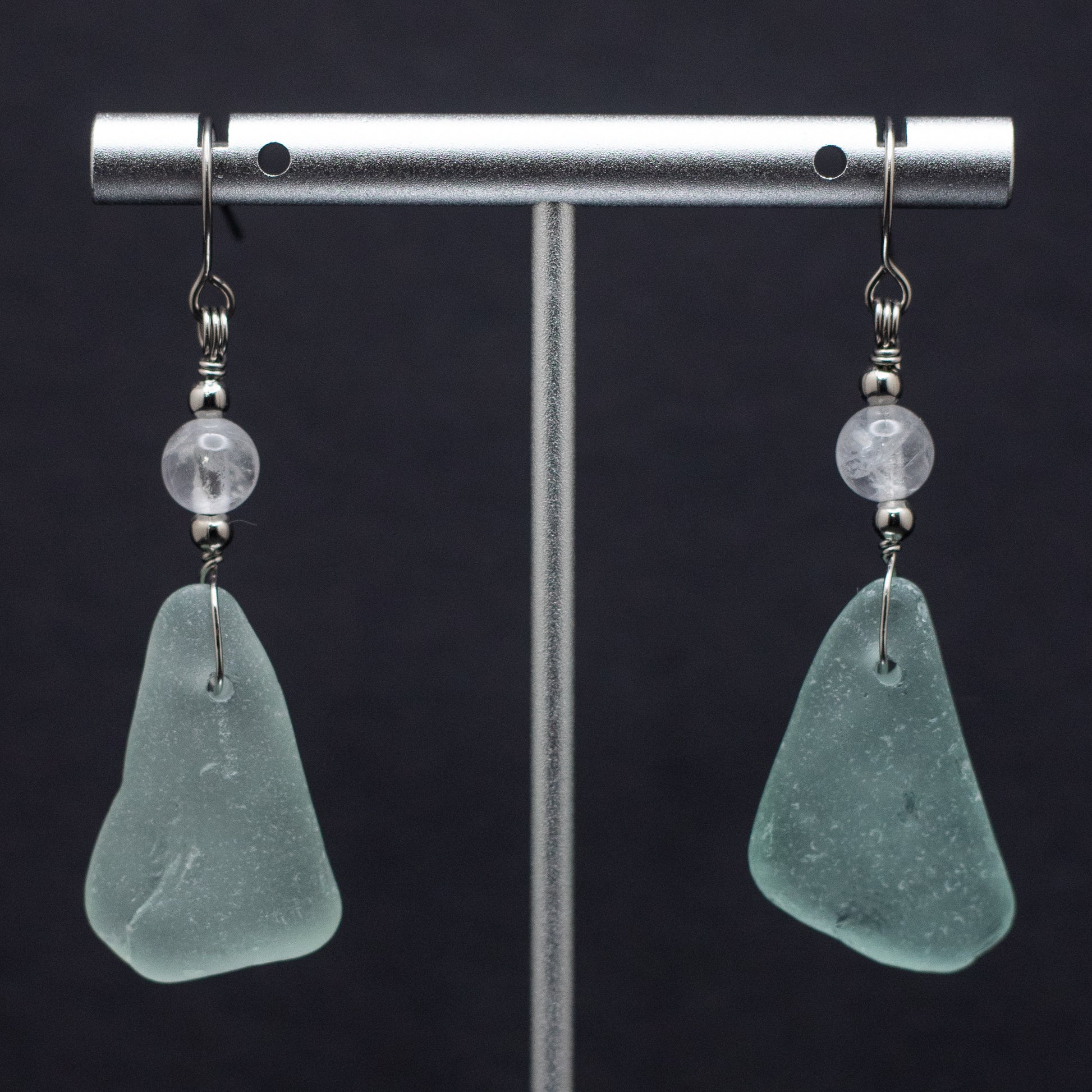 Aqua Beach Glass & Quartz Earrings - Nova Scotia