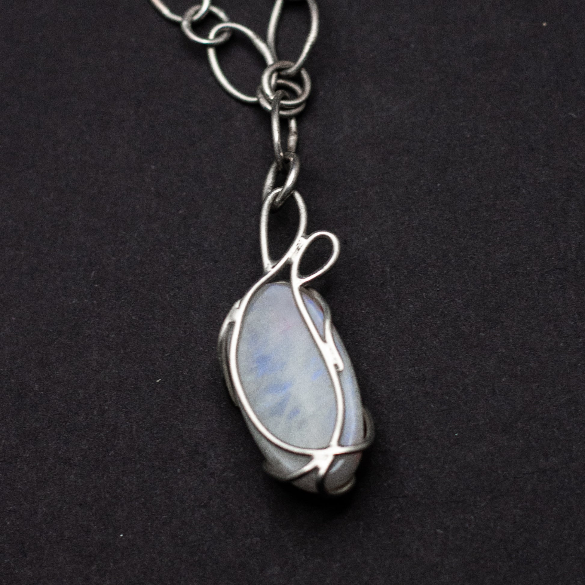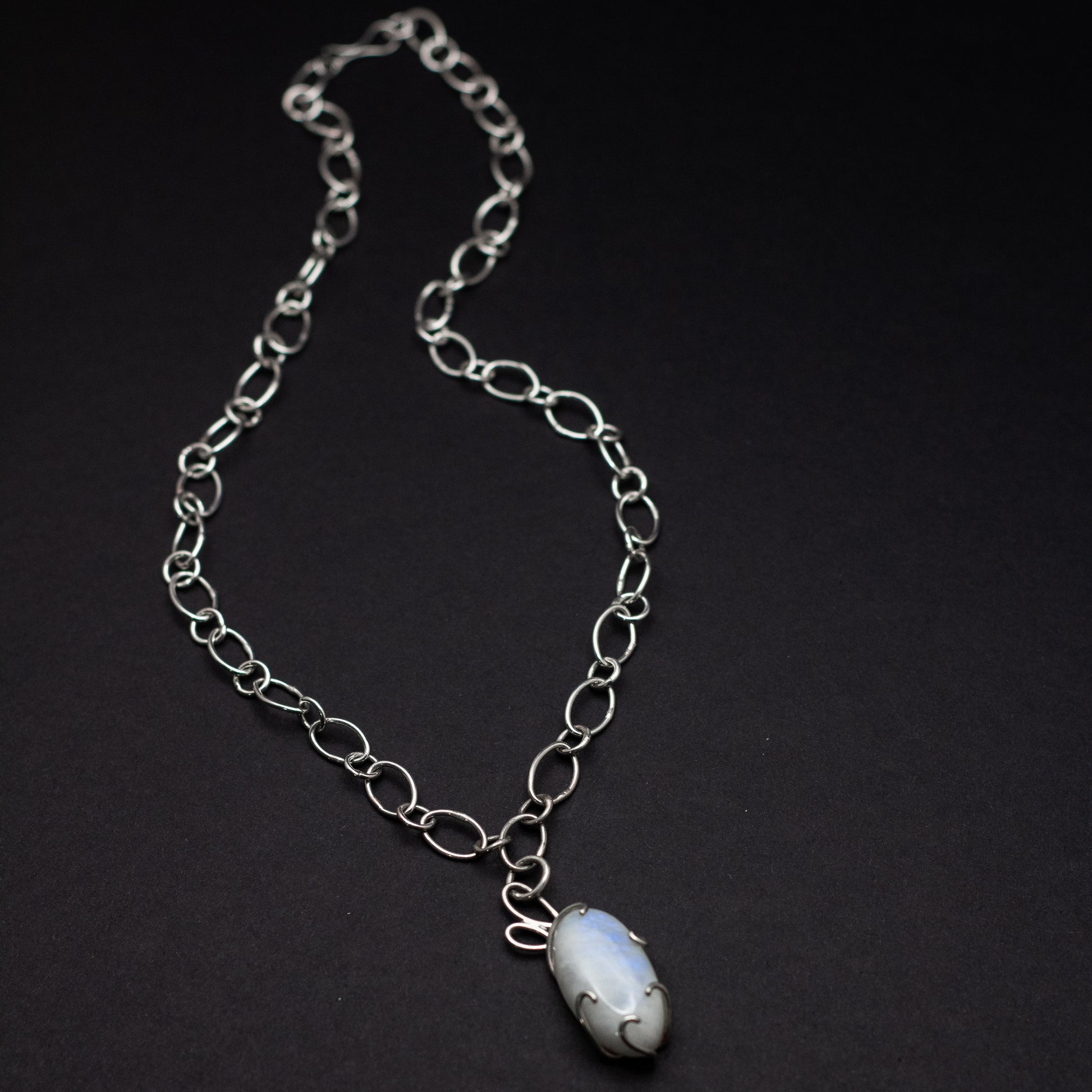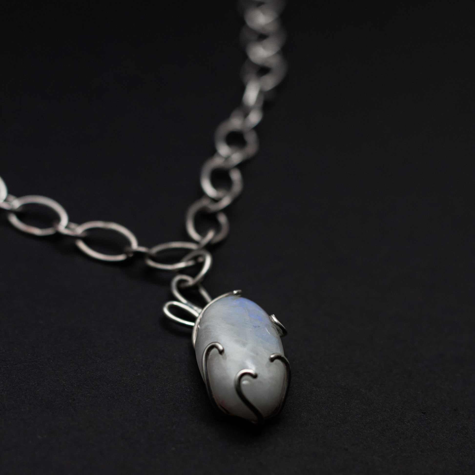 Designed as a singular statement piece, this necklace honors traditional metalsmithing techniques while allowing the natural beauty of the moonstone to take center stage. Timeless, intentional, and deeply considered, it is a wearable heirloom made to be cherished.