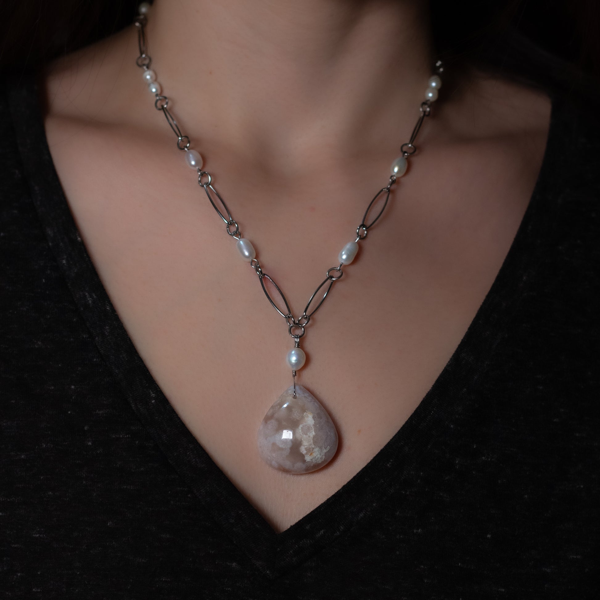 Cherry Blossom Agate and Freshwater Pearl Statement Necklace