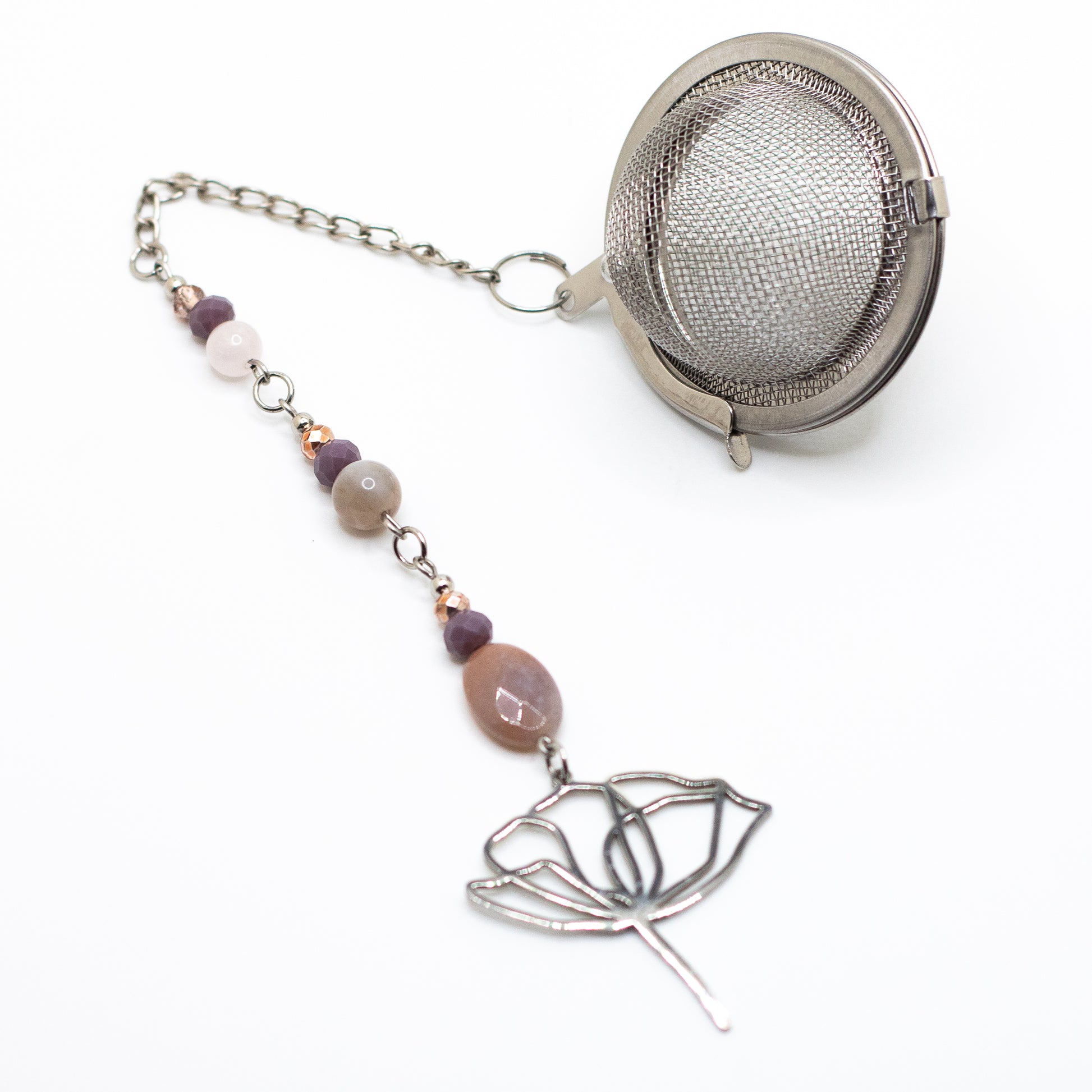 Our handcrafted stainless steel tea infusers bring beauty to your daily ritual with charms made from genuine gemstones, shimmering Czech glass, and nature-inspired stainless steel details. Built entirely with stainless steel for durability, easy cleaning, and long-lasting use, these infusers pair practicality with artisan design—perfect for loose-leaf lovers and gift-giving alike.