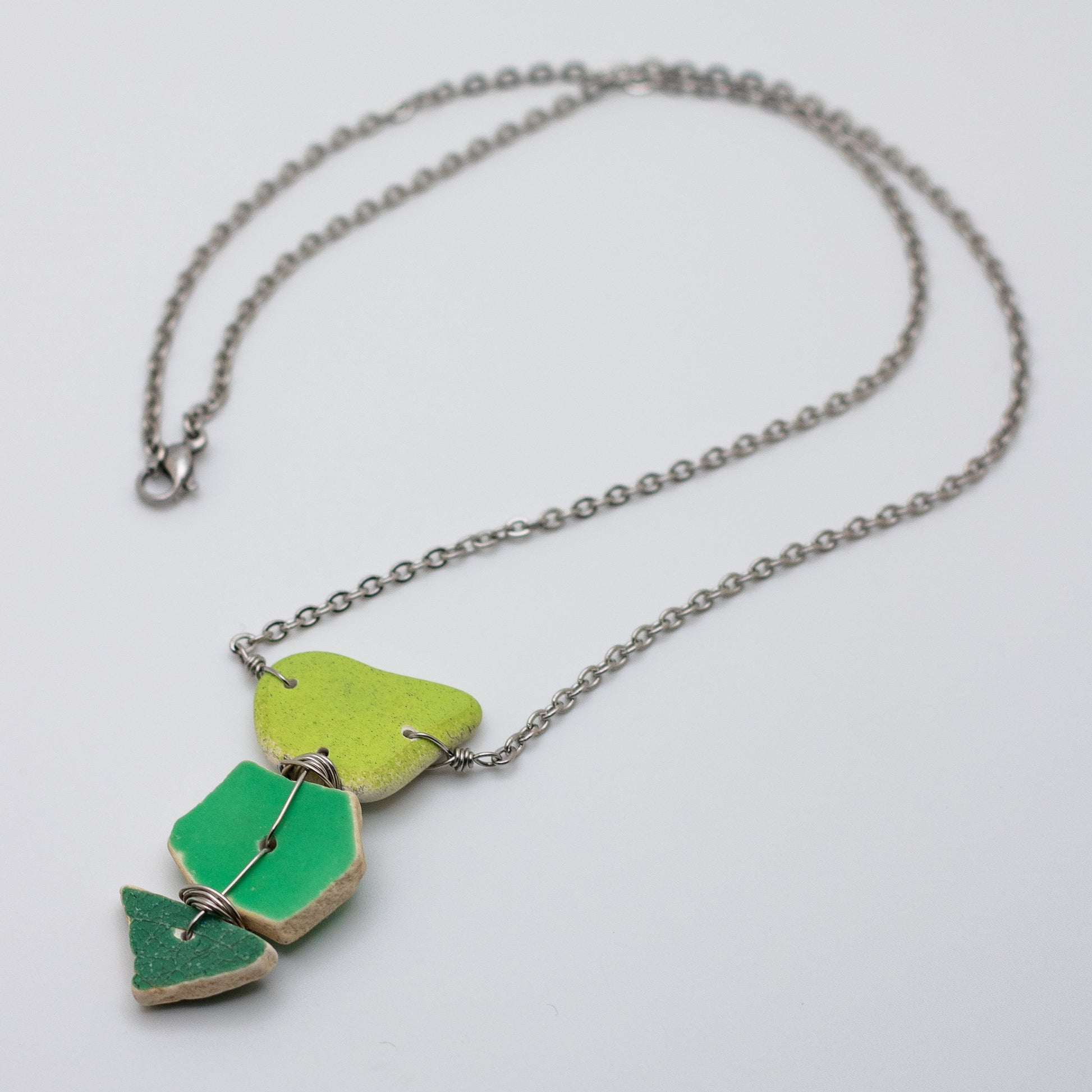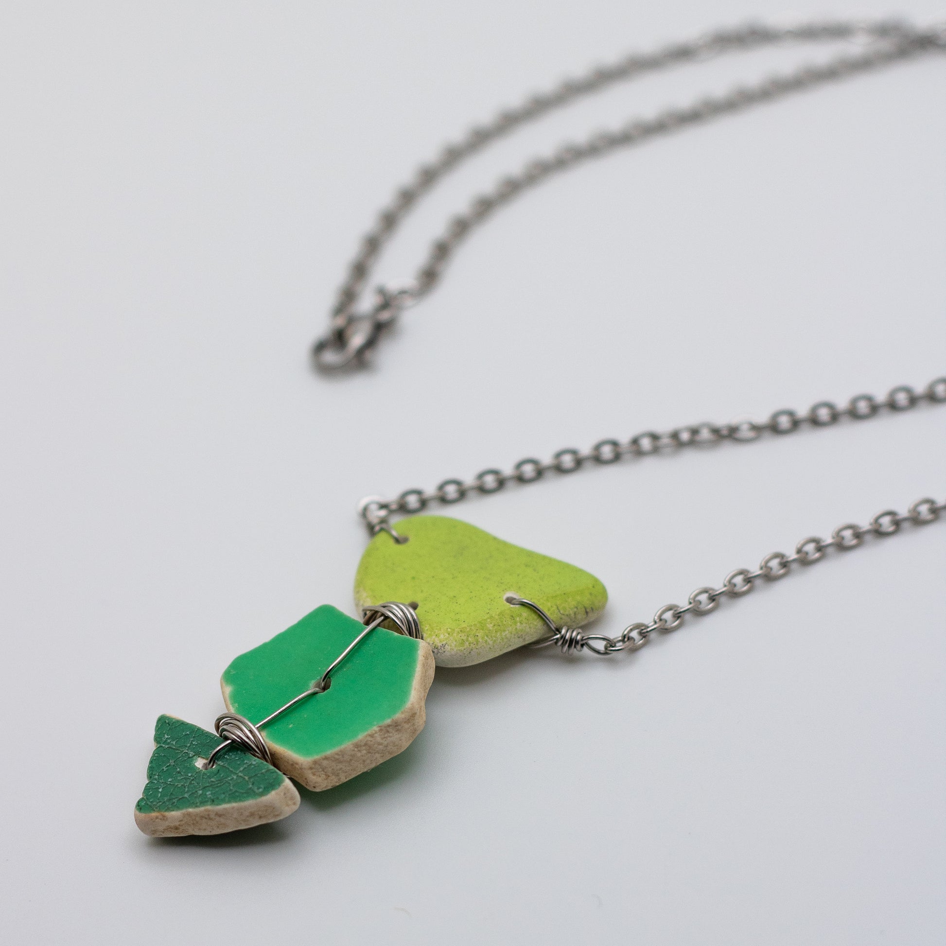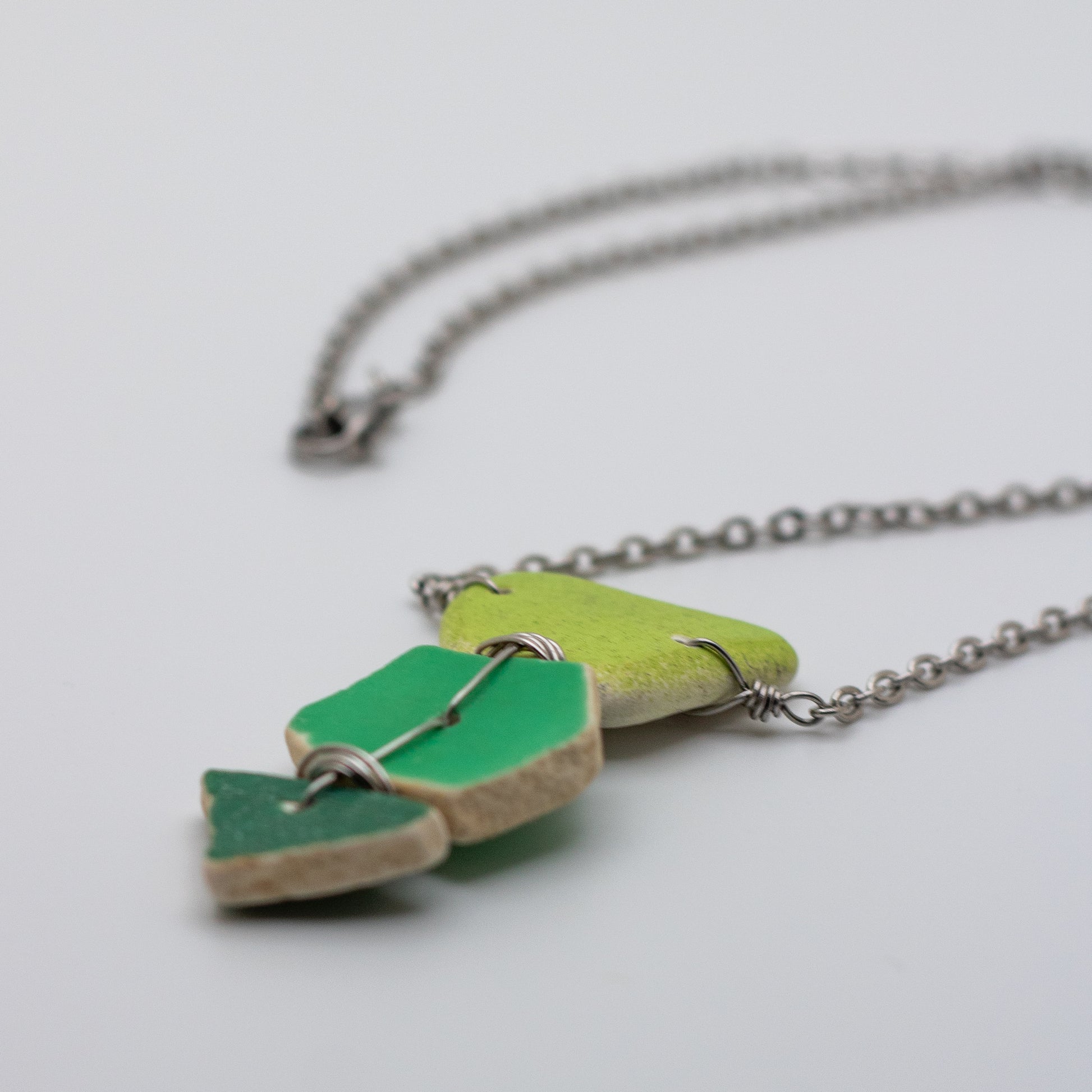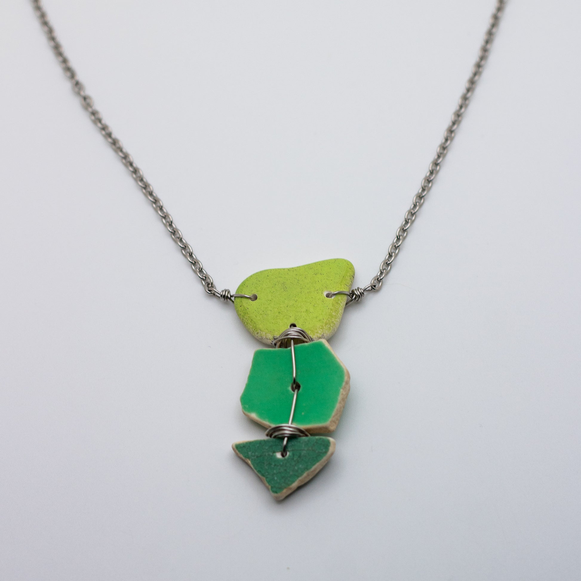 Lake Erie Green Beach Pottery Trio Necklace