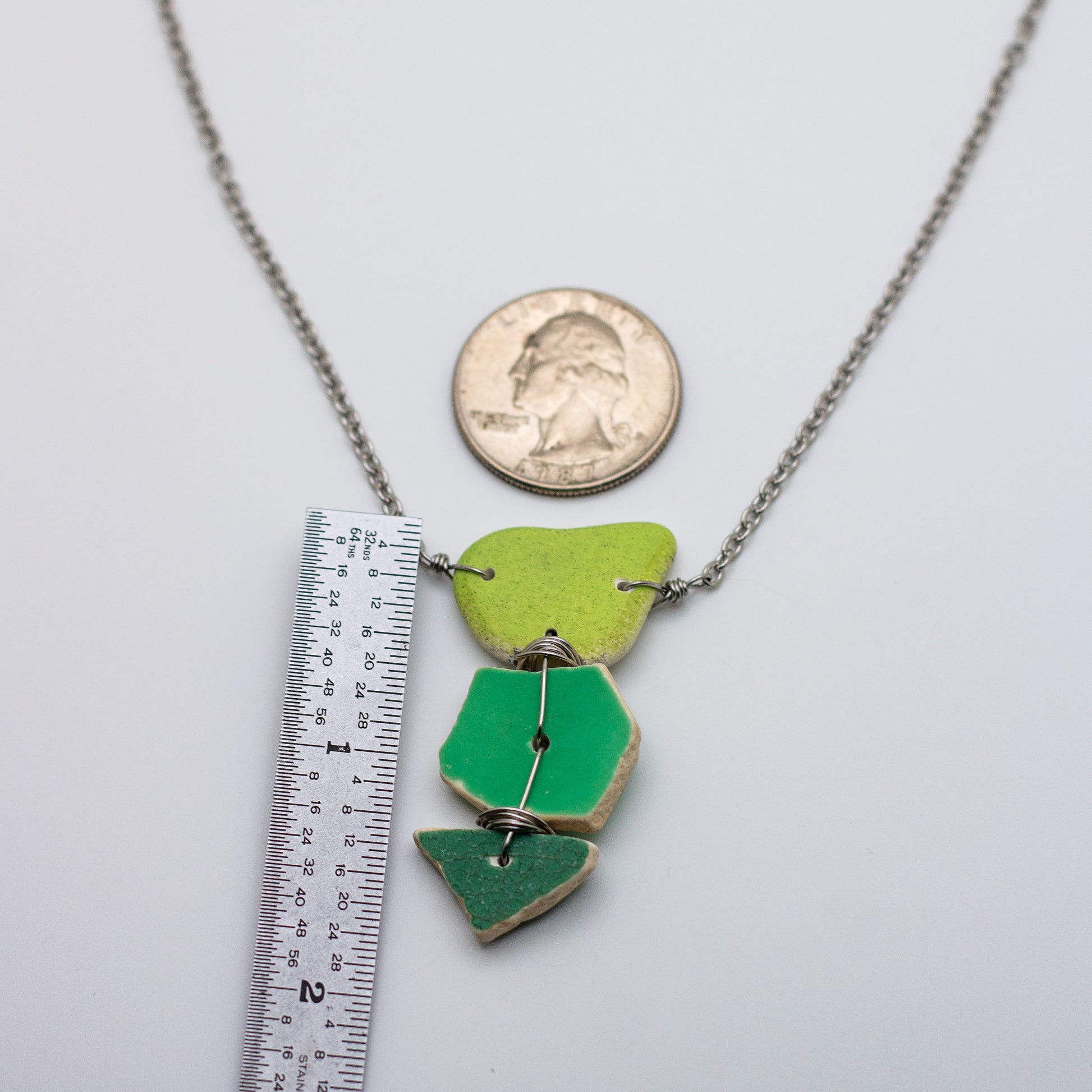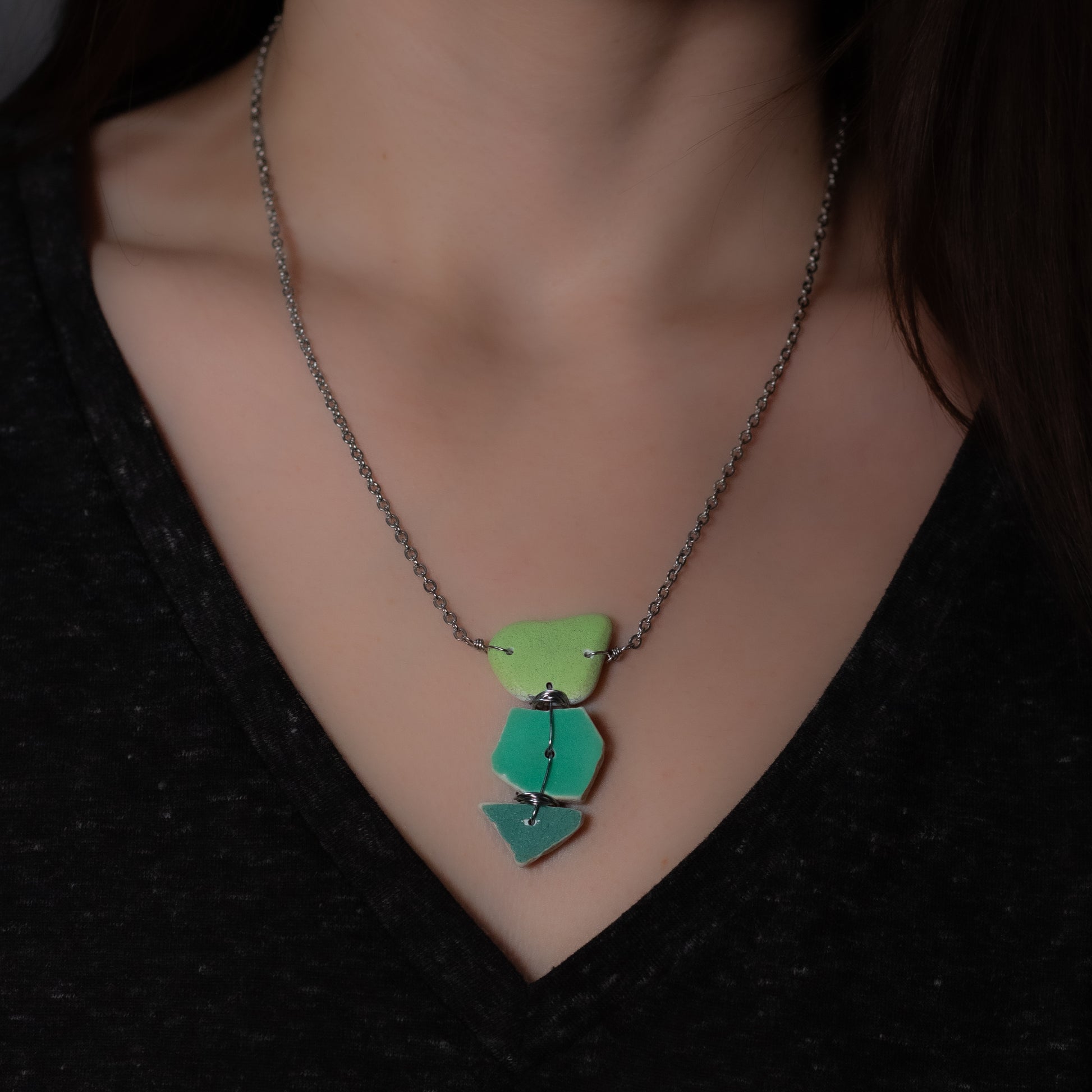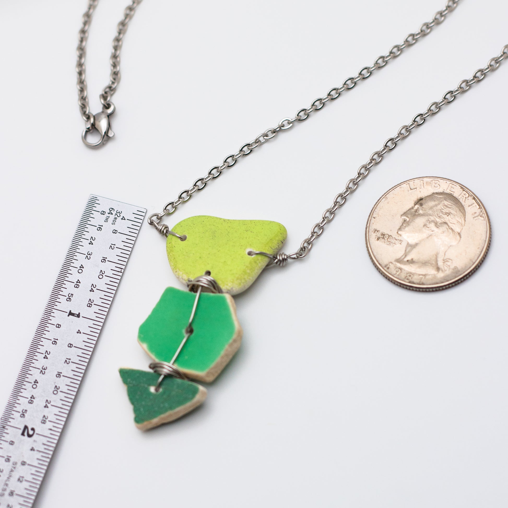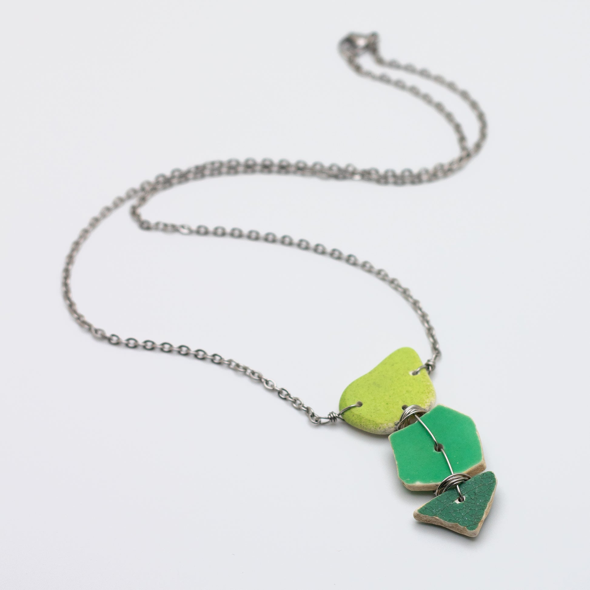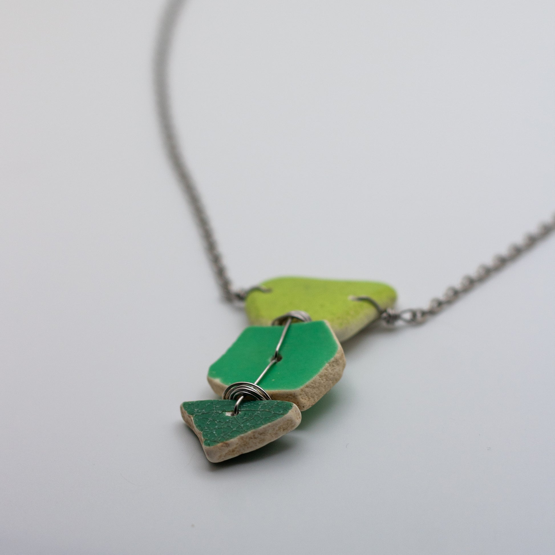 Lake Erie Green Beach Pottery Trio Necklace