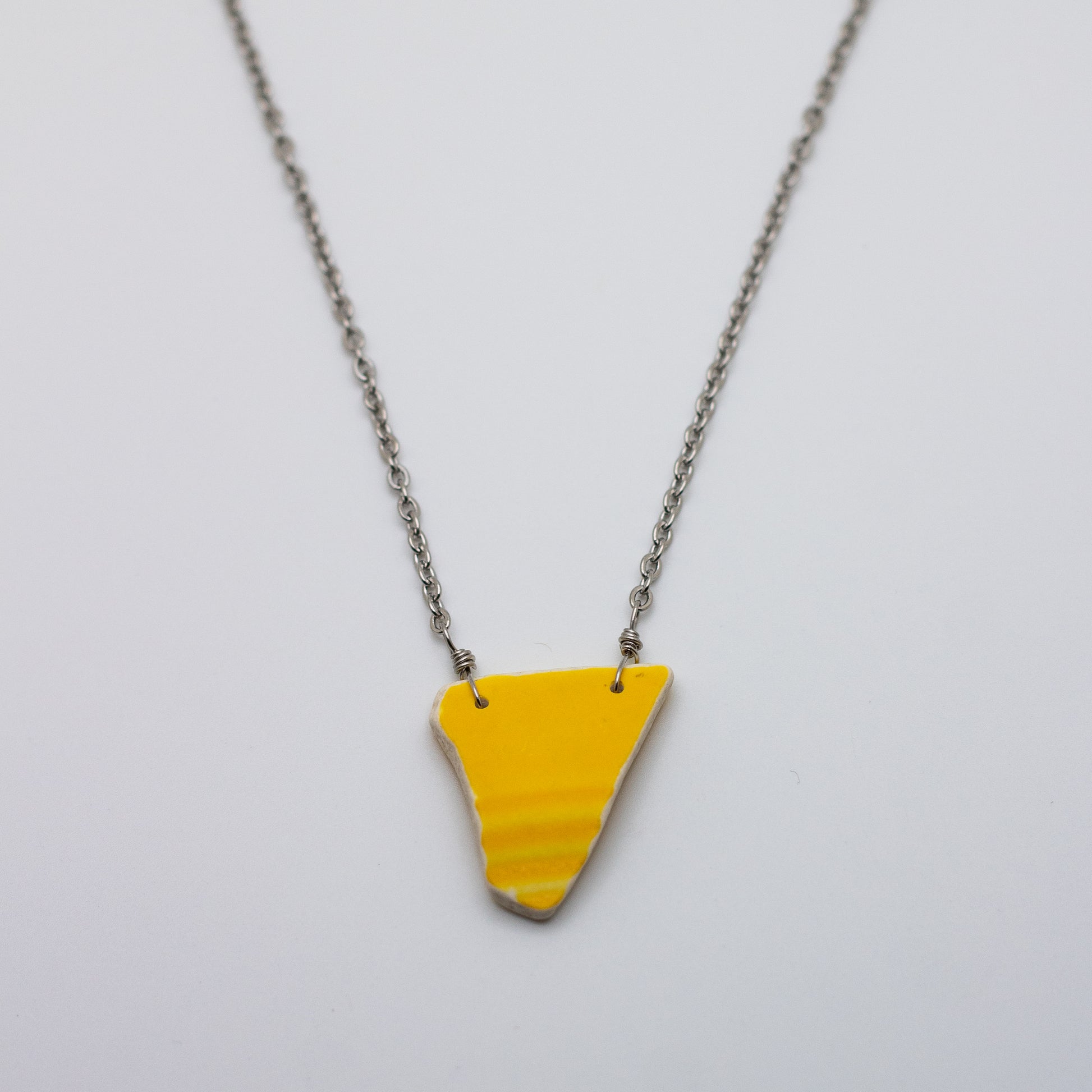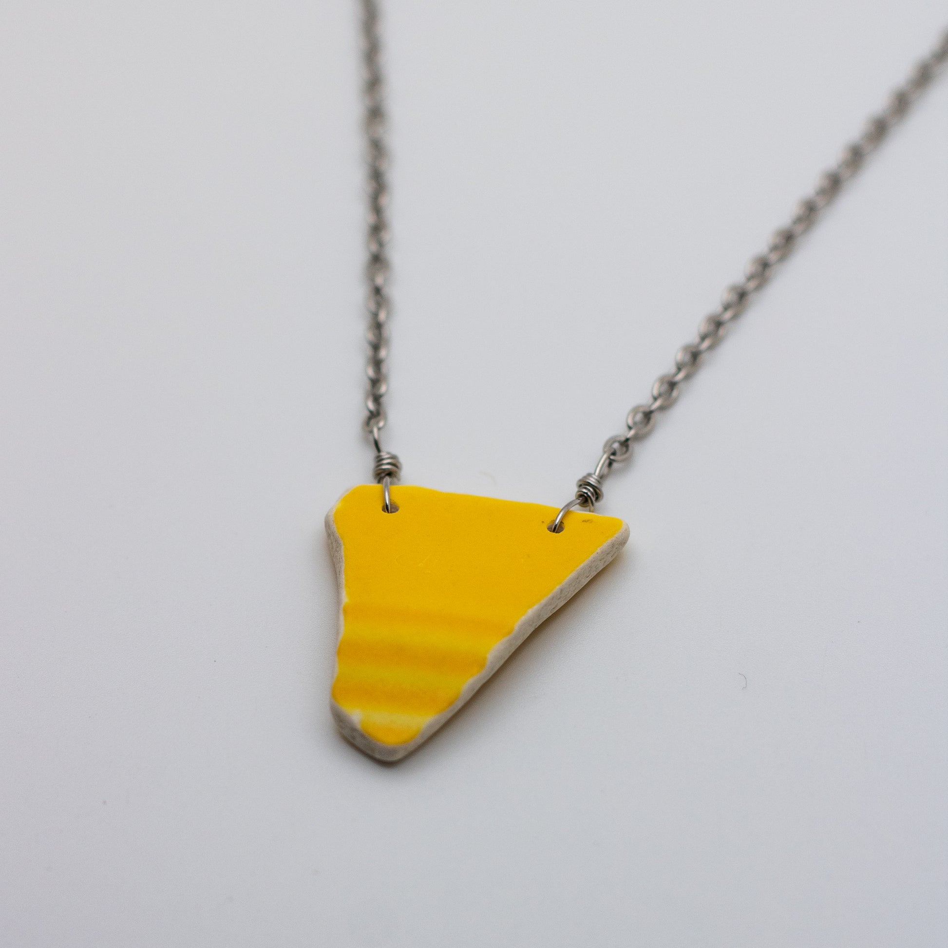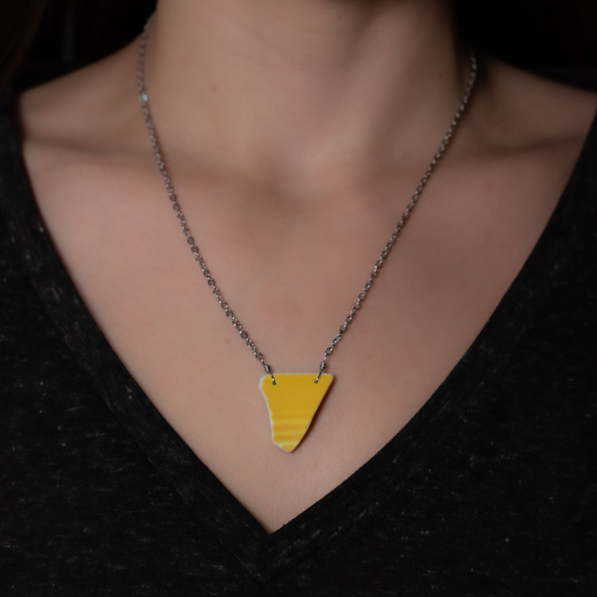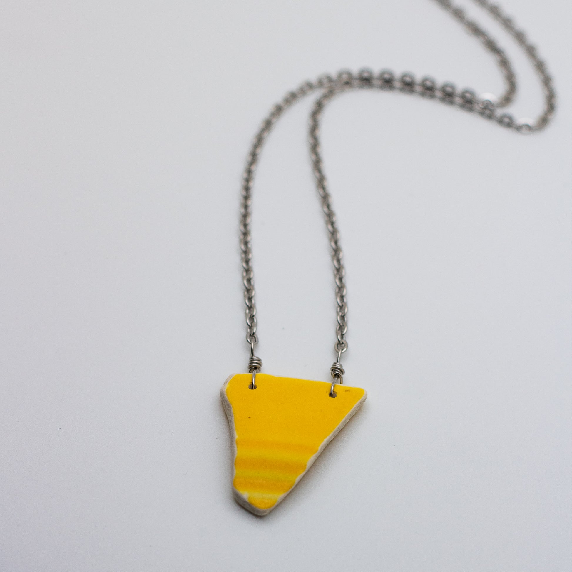 Lake Erie Yellow Textured Beach Pottery Necklace