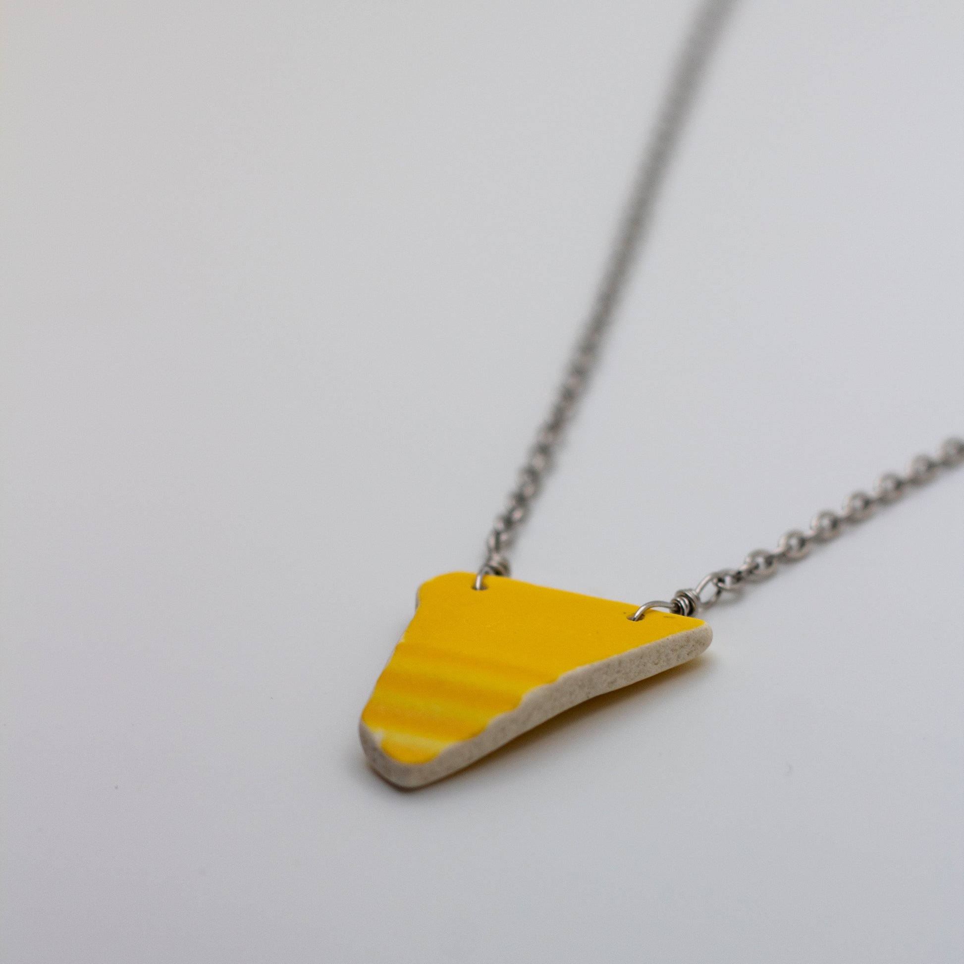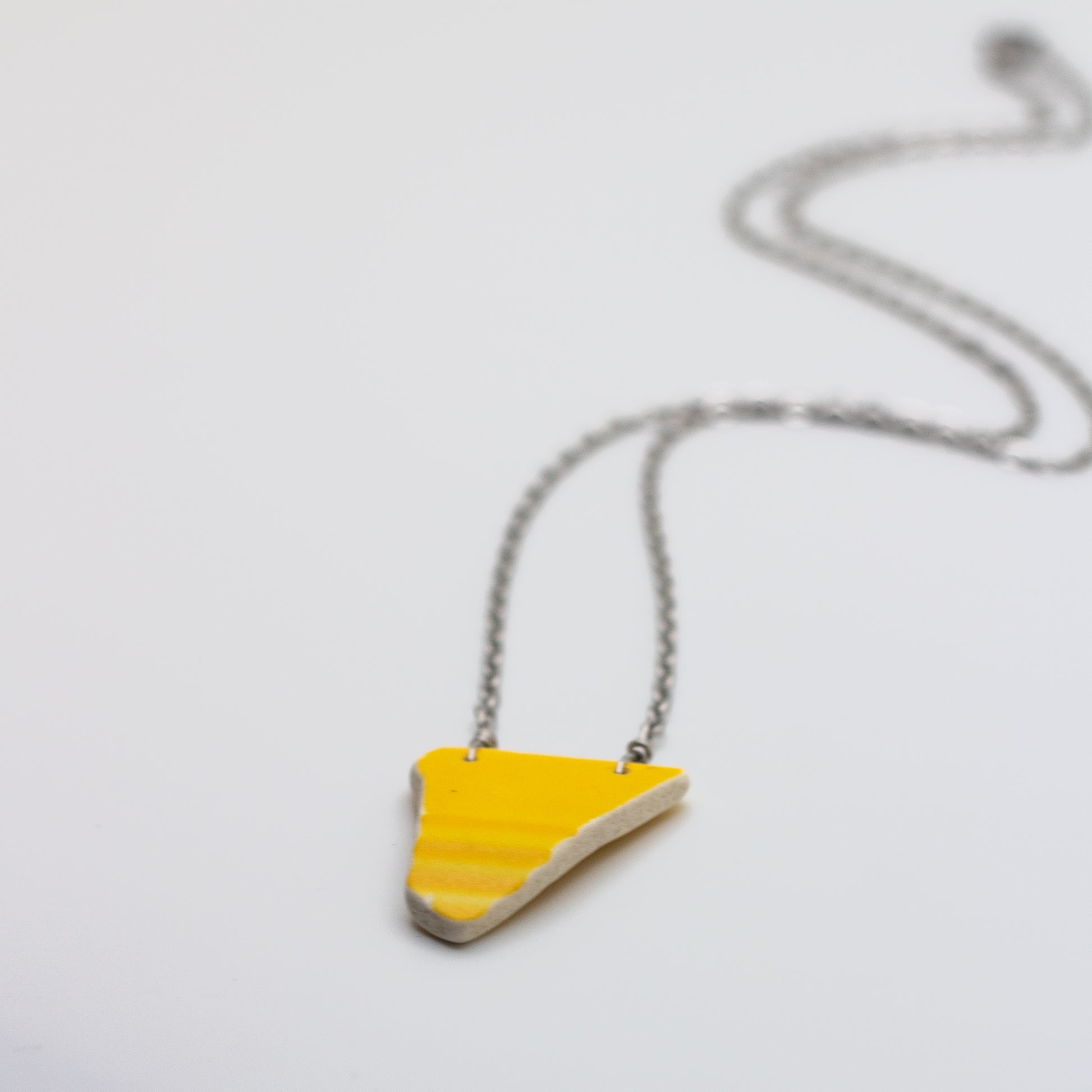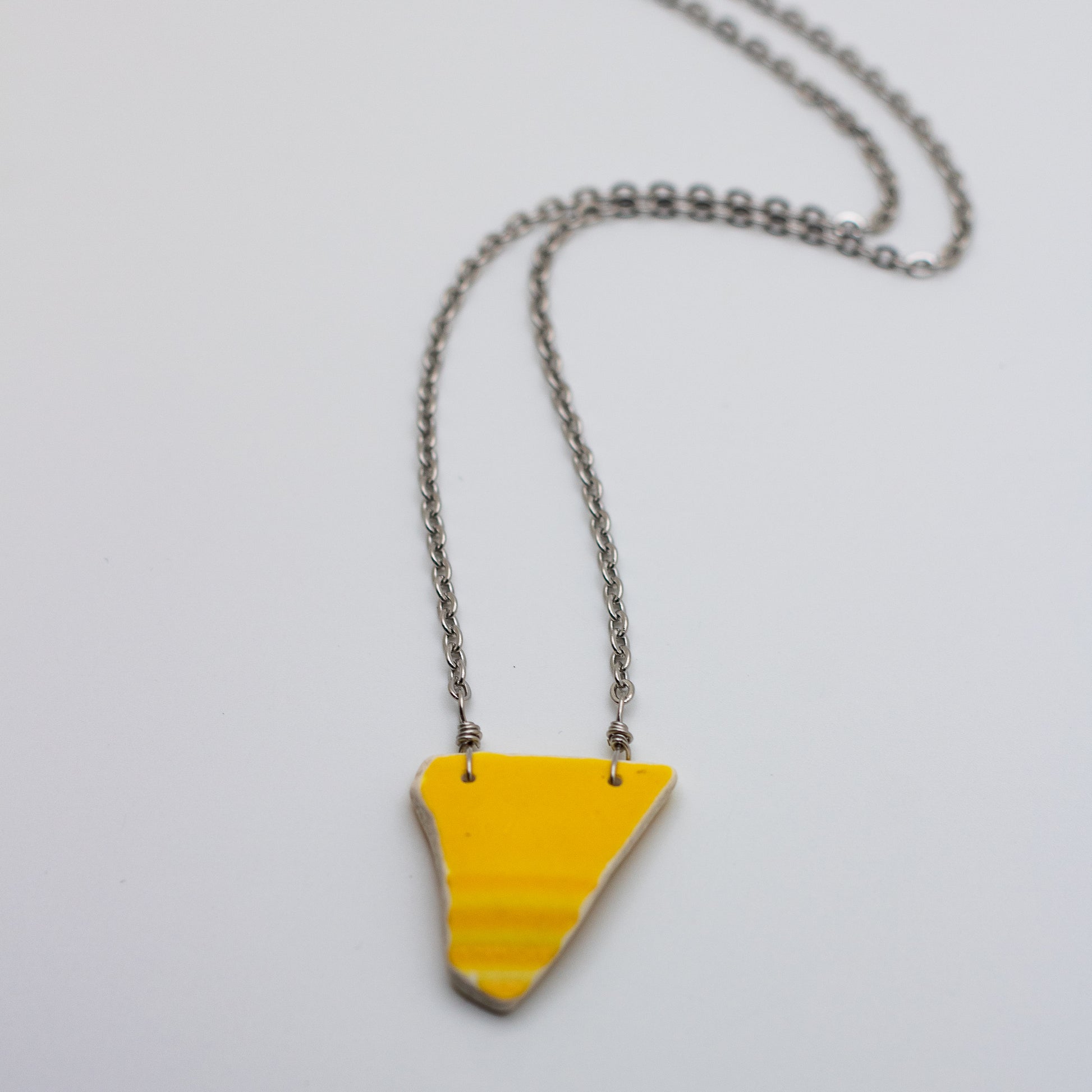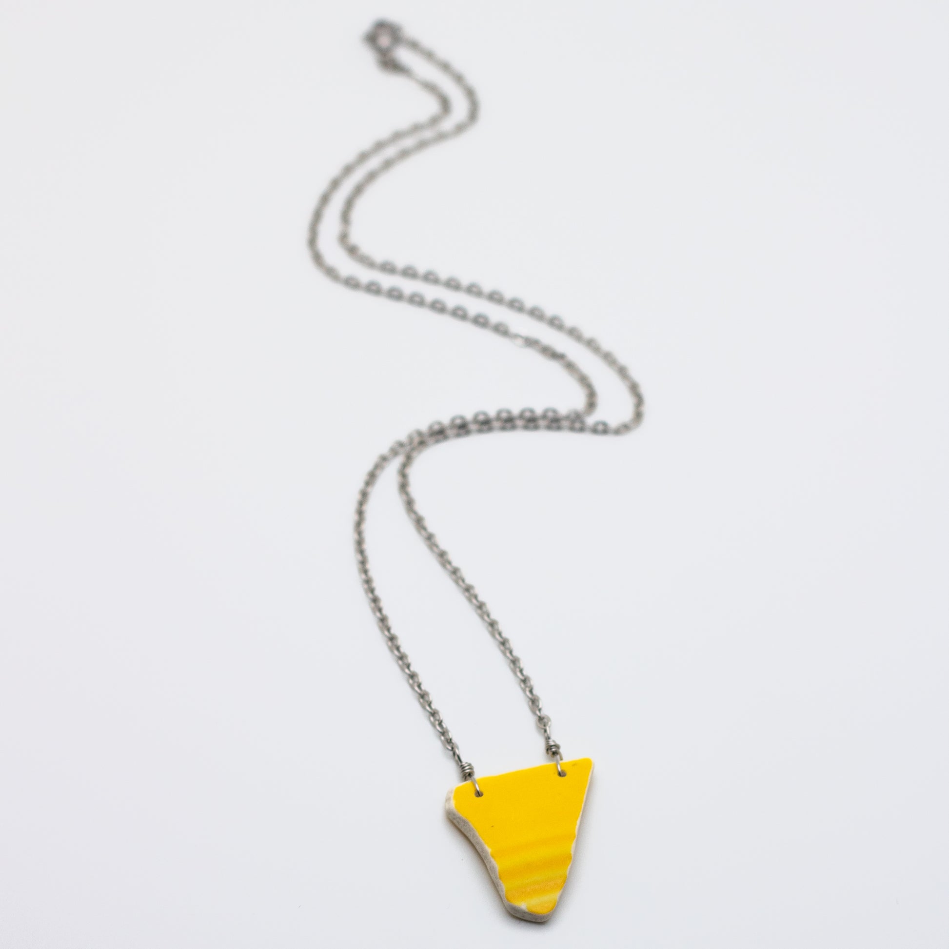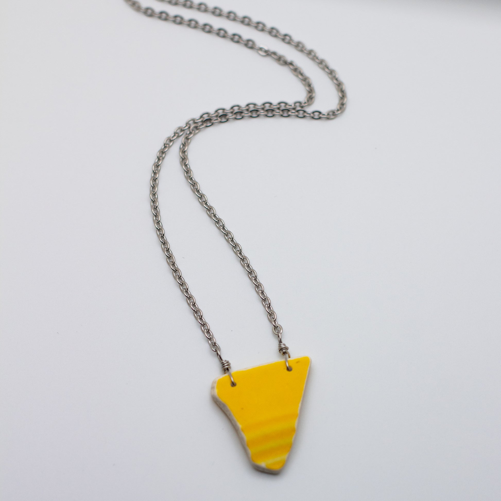 Lake Erie Yellow Textured Beach Pottery Necklace