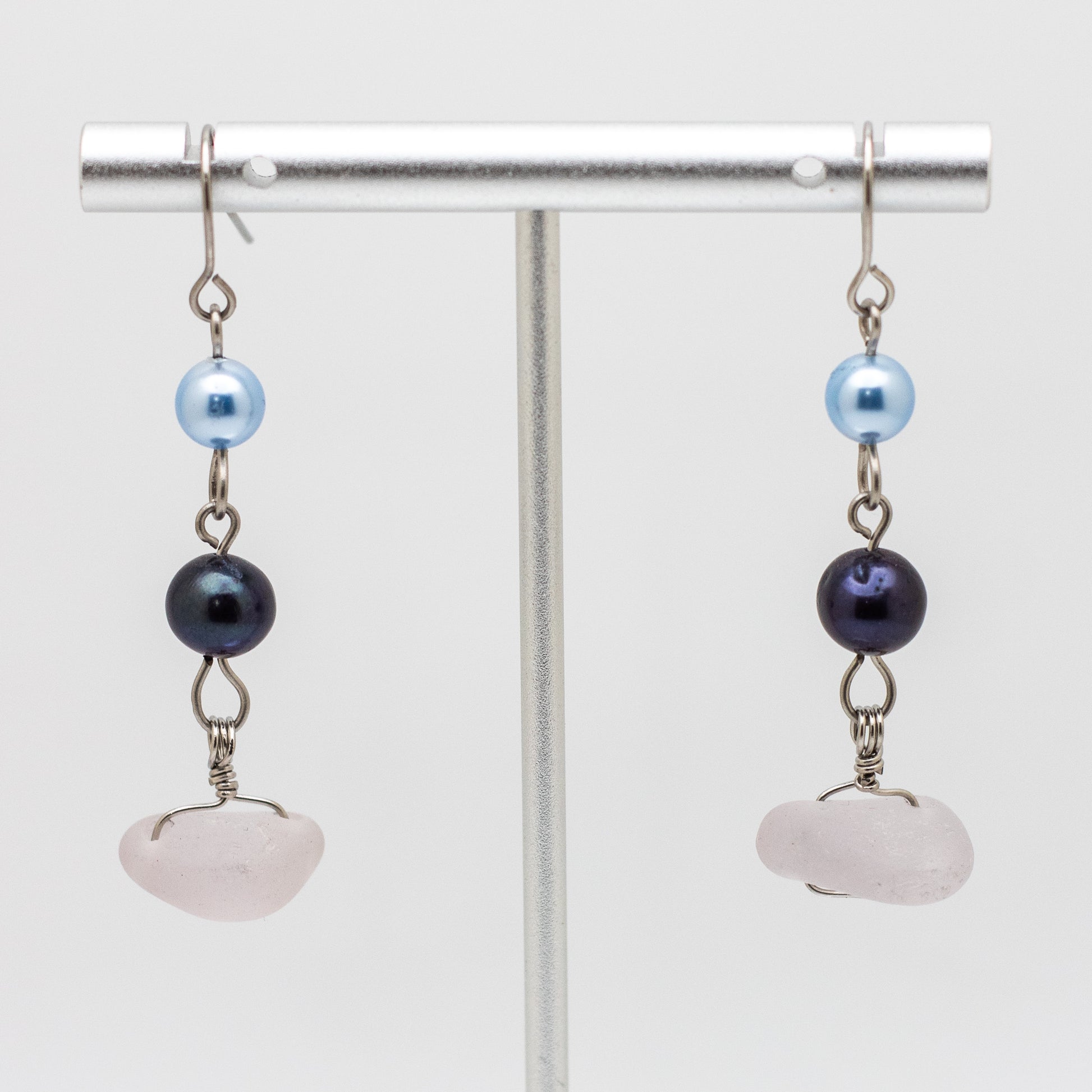 Dreamy and distinct, these Lavender Beach Glass Earrings bring a touch of coastal magic to your collection. Featuring double-drilled lavender beach glass, hand-collected from the shores of Nova Scotia, each piece tells a story of waves, wind, and time. The rare lavender hue is beautifully accented by pearl-like beads in bright blue and moody purple tones, creating a captivating color harmony that shifts gently with the light. Crafted entirely from surgical-grade stainless steel, these earrings are hypoallergenic, durable, and tarnish-resistant, designed for effortless, lasting wear. Measuring 2” in length, they perfectly balance elegance with a free-spirited, ocean-worn charm.