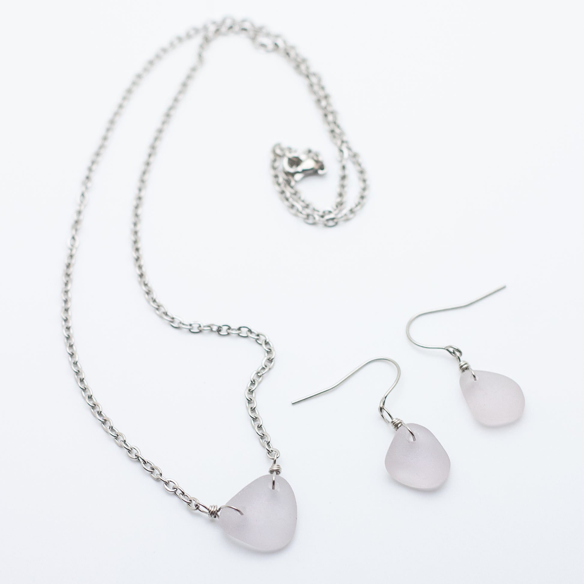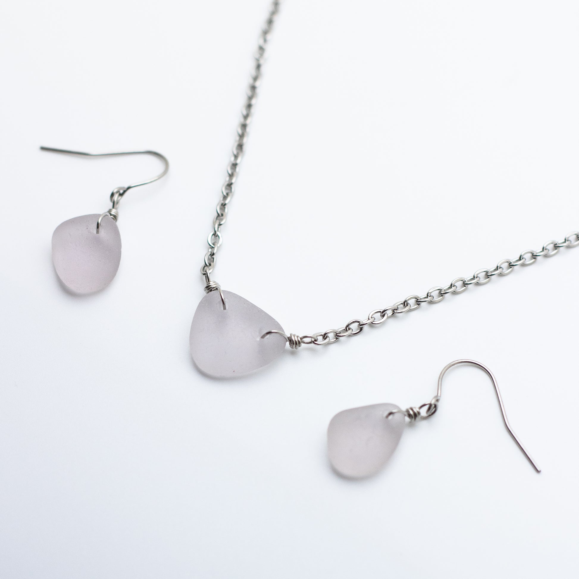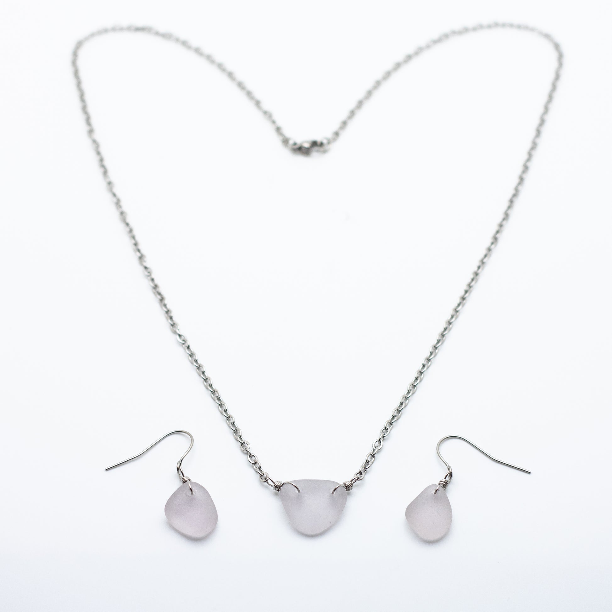 Lavender Beach Glass Necklace & Earring Set — Nova Scotia