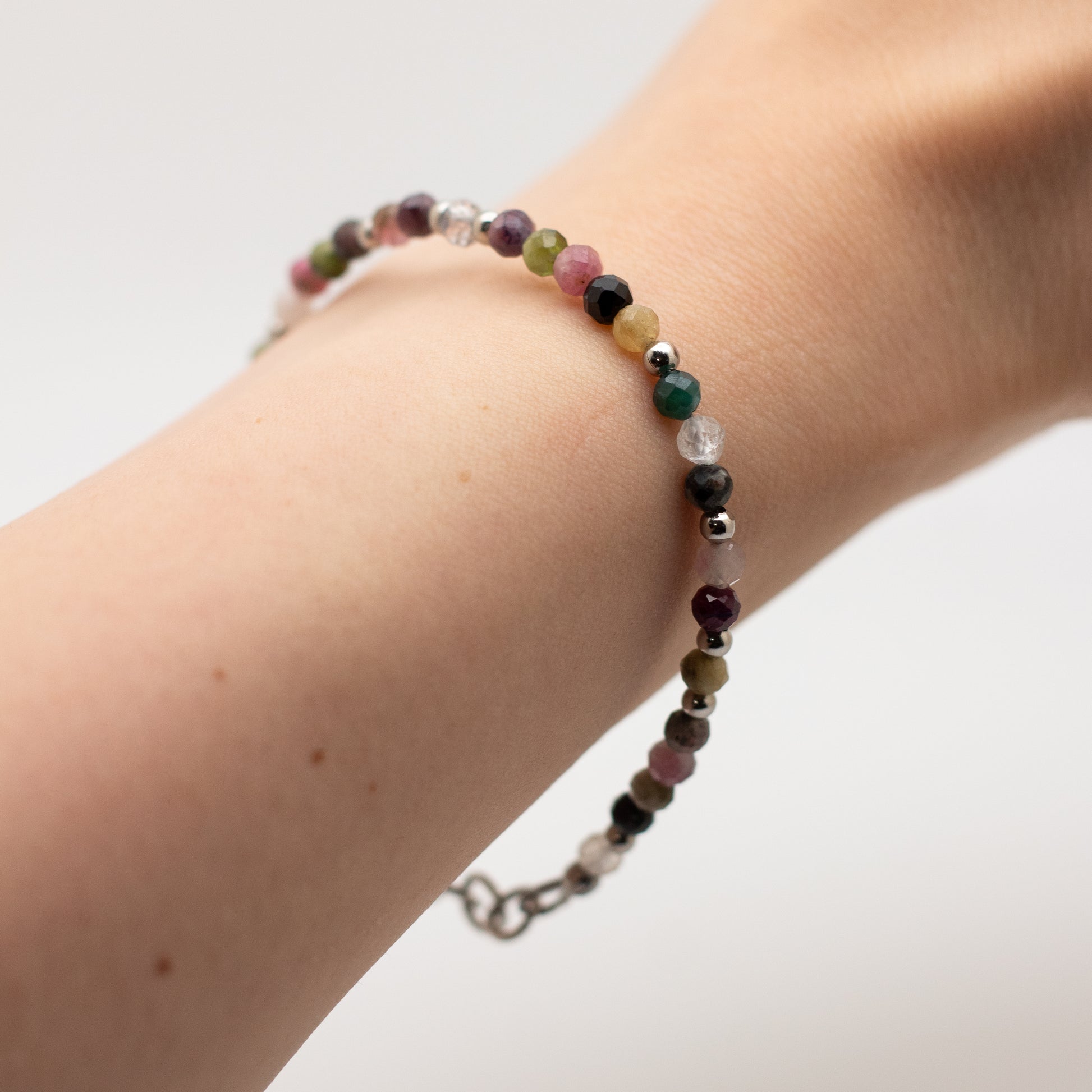 Playful yet grounding, this Microfaceted Watermelon Tourmaline Bracelet showcases an irresistible mix of pinks, greens, and earthy tones—each gemstone bead a tiny world of color. The delicate faceting brings a soft sparkle to the wrist, while the natural variations in each stone make this piece feel one-of-a-kind.