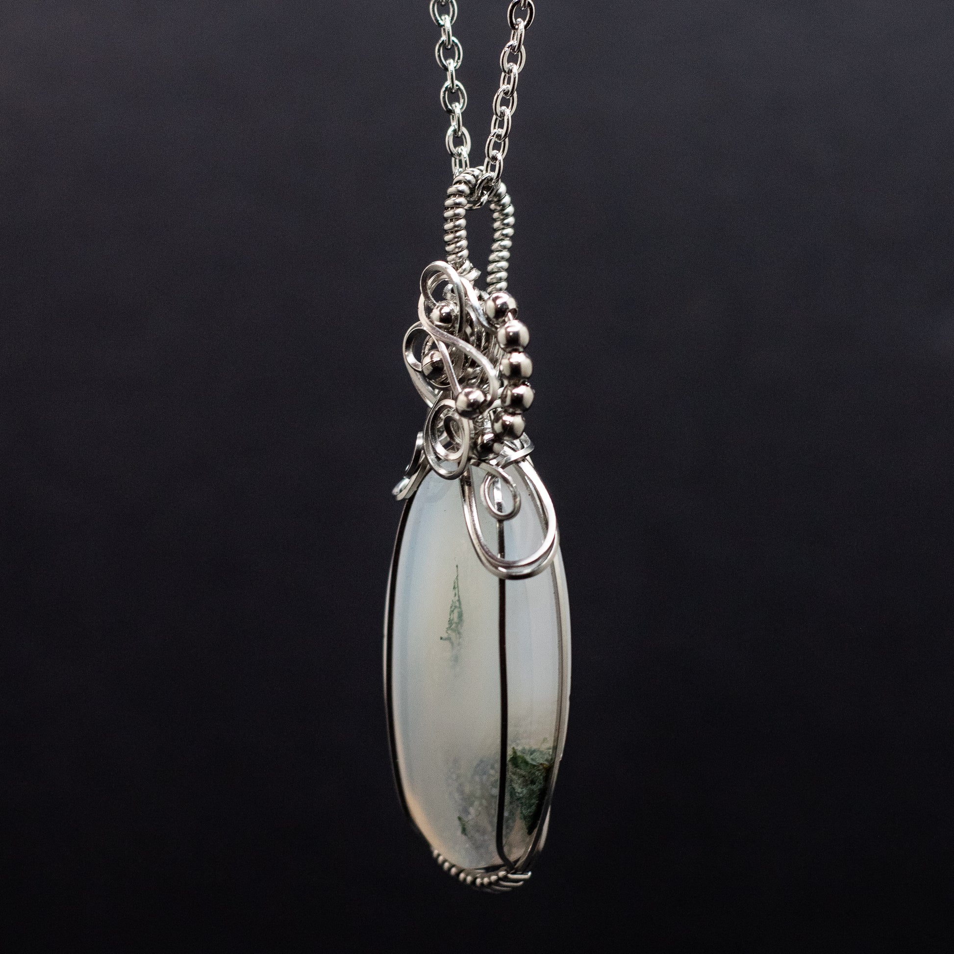 Stone: Genuine Moss Agate (2.5” pendant length)