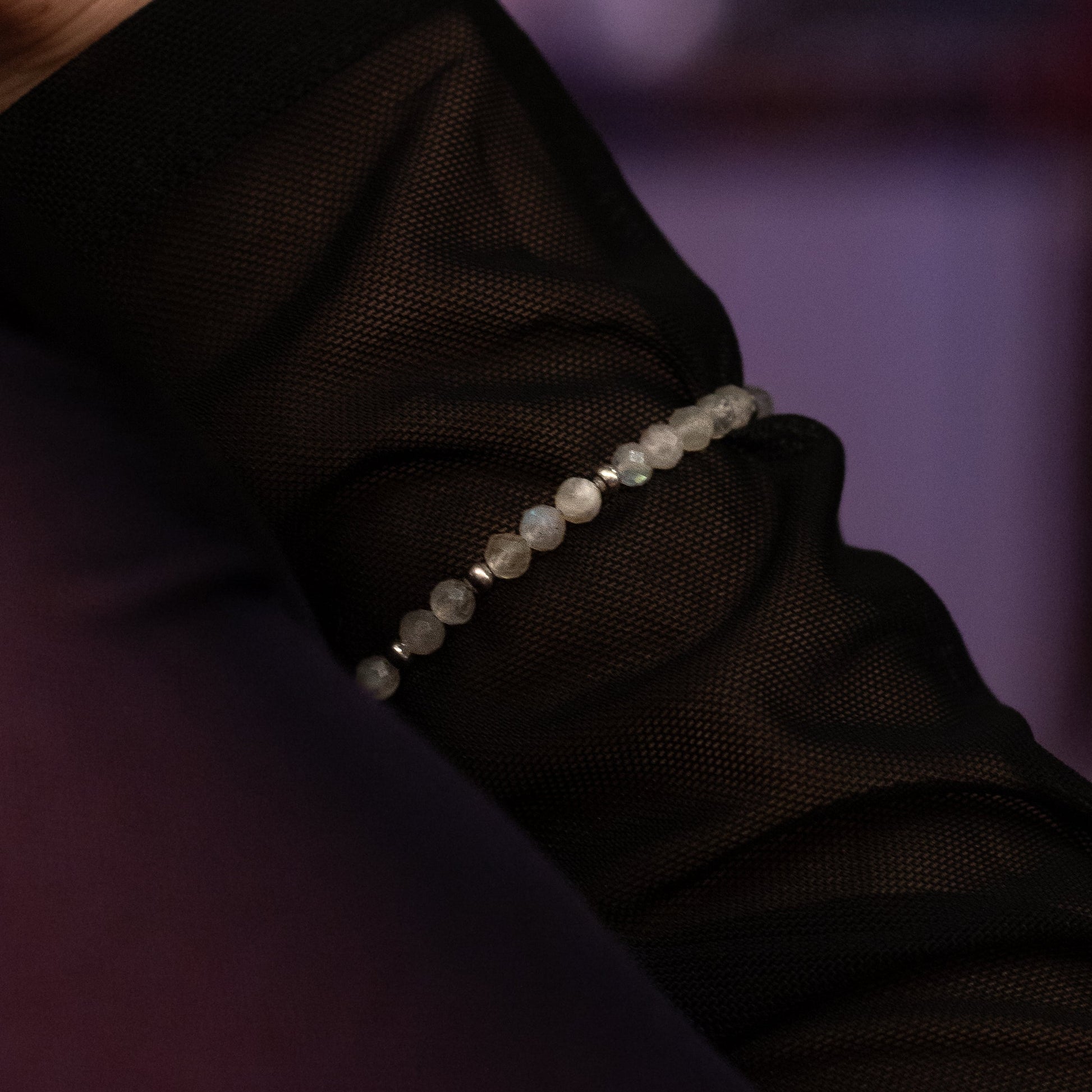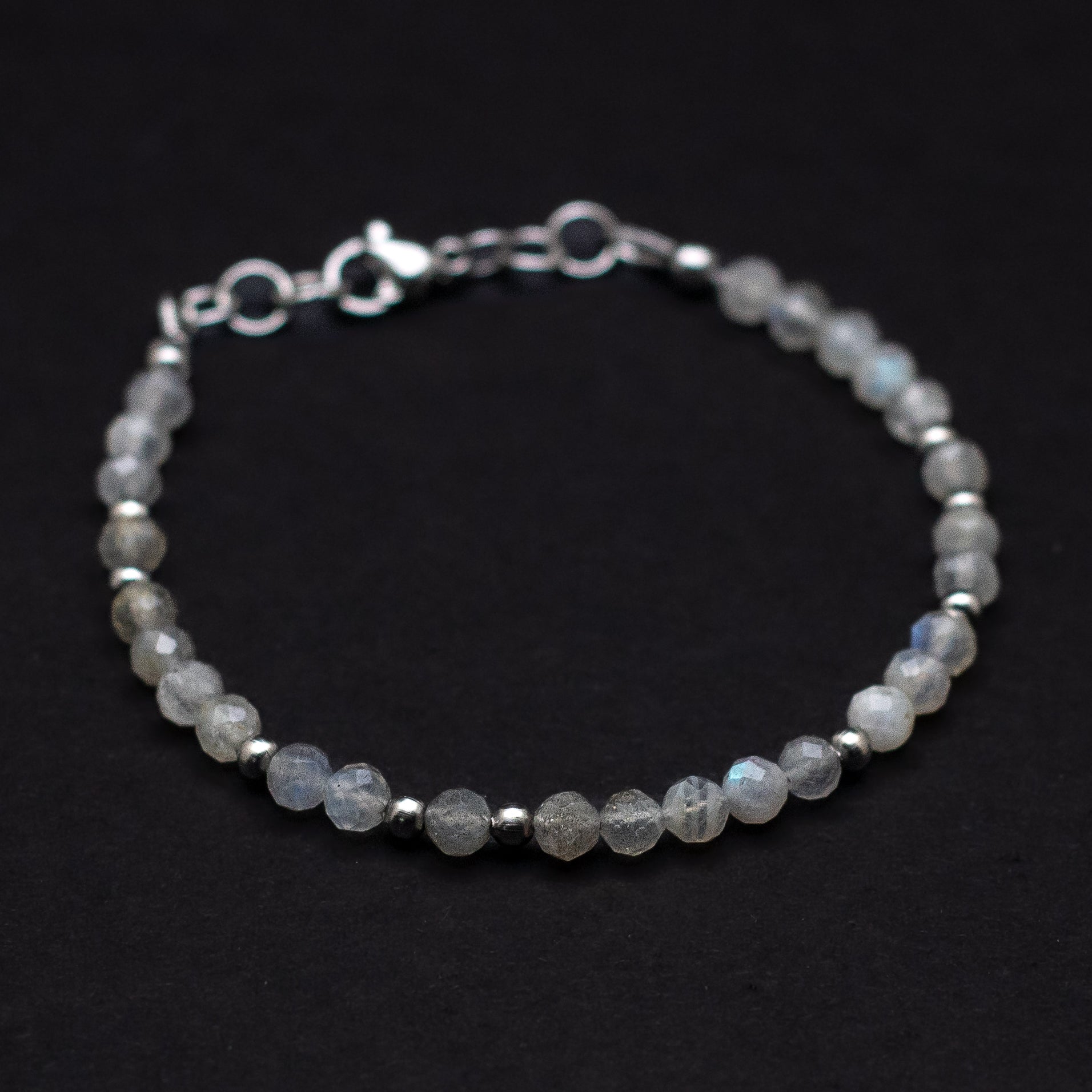 The labradorite bracelet, which measures 7.5” in length (adjustable upon request—please leave your desired length in your order notes), is crafted to reflect inner strength, protection, and transformation. Labradorite is often regarded as a stone of perseverance and intuition, making it a powerful companion for those navigating recovery, reflection, or support roles.