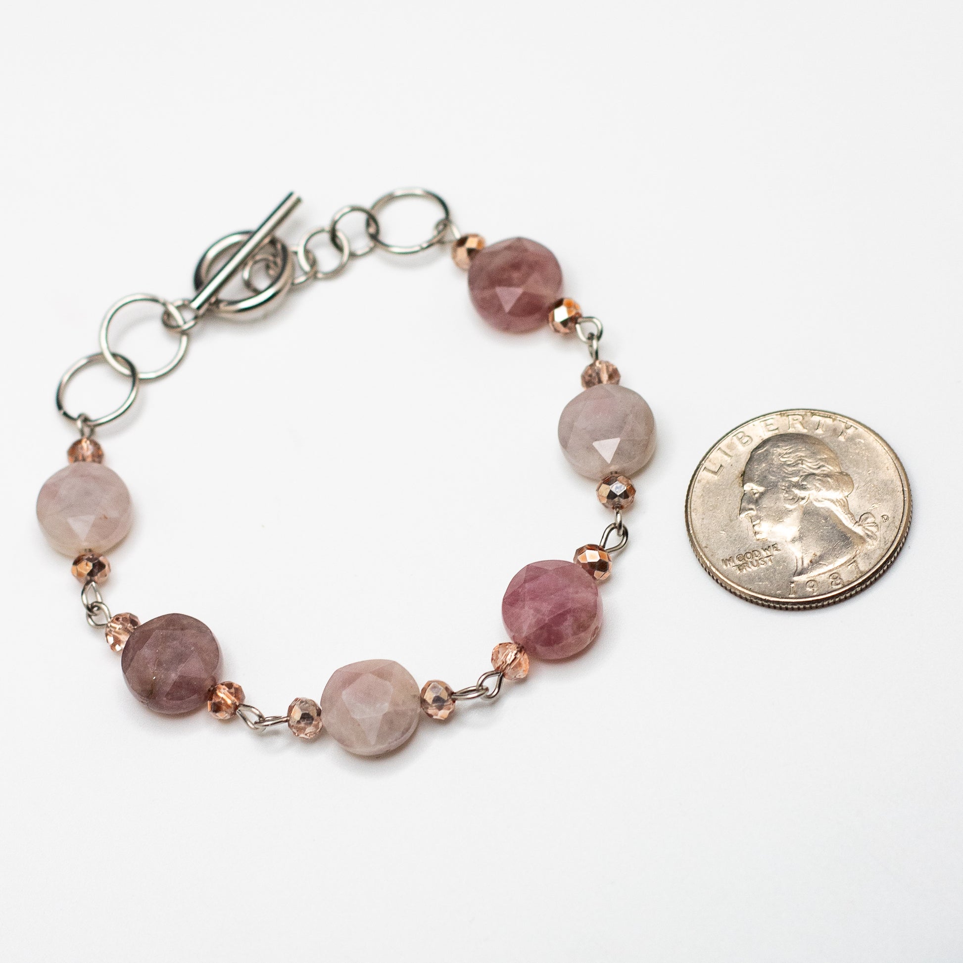 Elegant and full of gentle energy, this one-of-a-kind bracelet features 10mm faceted rose quartz coin beads in soft, romantic pink hues. Known as the Stone of Love, rose quartz is cherished for its association with compassion, healing, and emotional balance—making it both a meaningful keepsake and a beautiful everyday accessory.