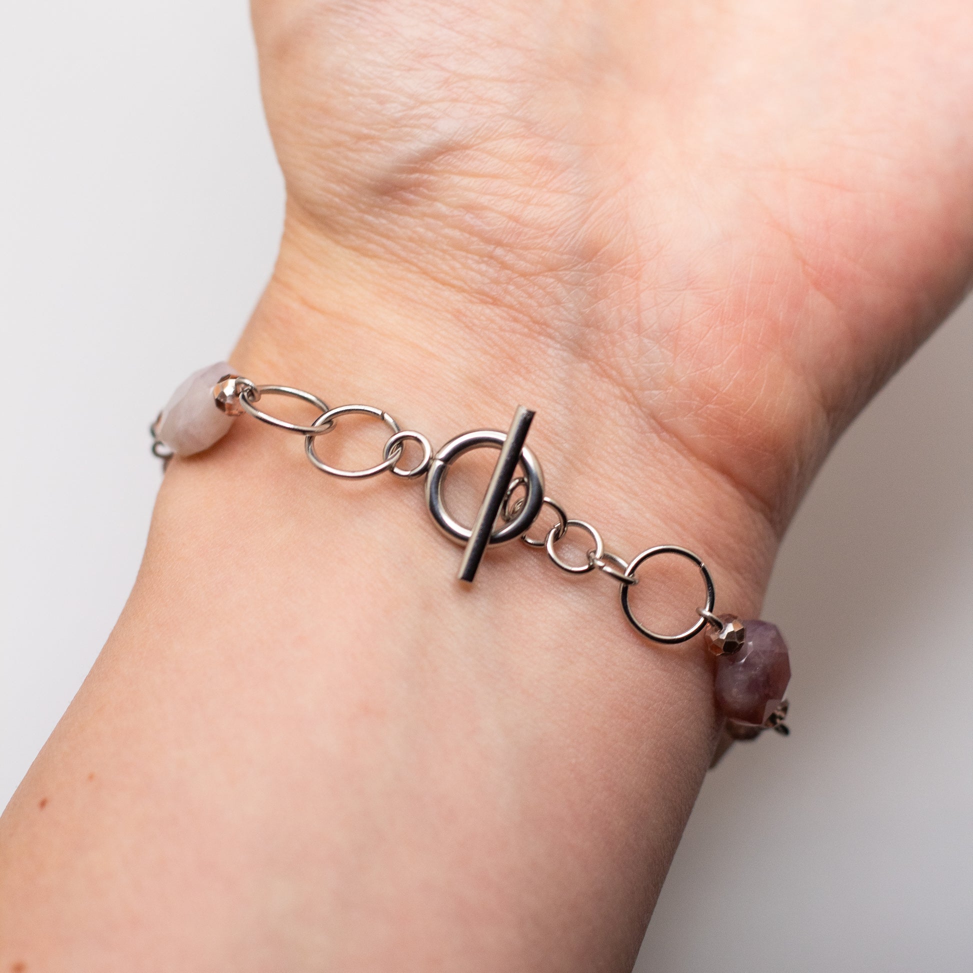 Handcrafted with durable, hypoallergenic stainless steel materials, this bracelet is built for lasting wear. The toggle clasp closure makes it easy to secure while adding a timeless finish to the design.