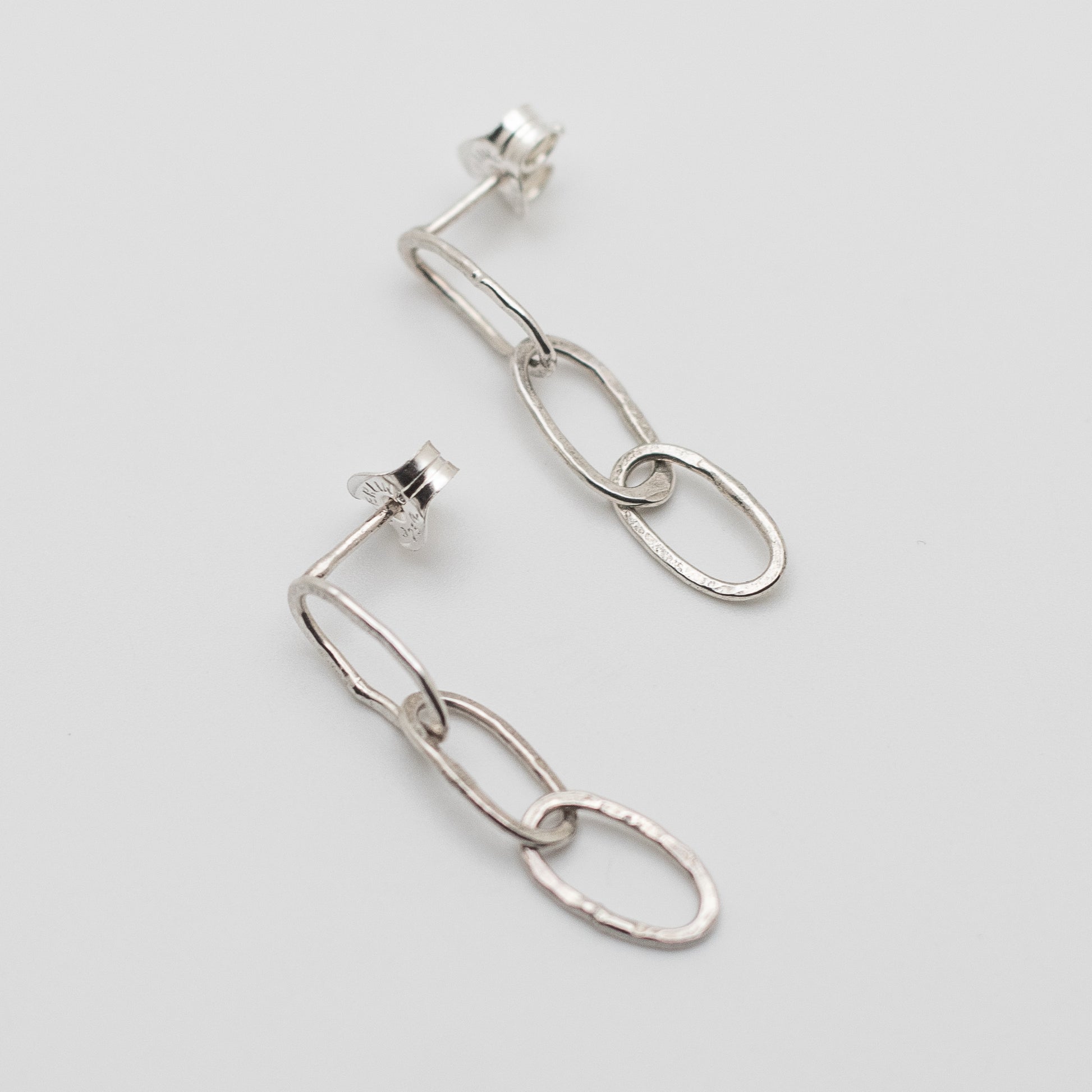 Textured Sterling Silver Paperclip Chain Post Earrings